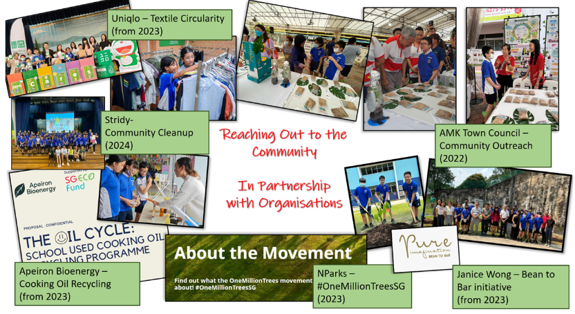 • Uniqlo, The Power of Clothing Schools Programme: Our school collaborates with family service centres to collect and redistribute pre-loved Uniqlo clothing, promoting the circular economy and reducing waste through the Neighbours Helping Neighbours Programme.
