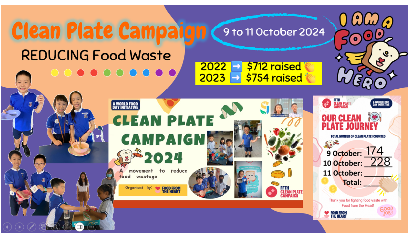 •Food from the Heart, Clean Plate Campaign: Every year, JingShanites participate in the 3-day campaign which aims to raise awareness about food wastage and encourage JingShanites to pledge and support the movement. Our Green Champs serve as advocates, encouraging JingShanites to finish their meals with a clean plate during recess. For every clean plate, $1 is raised, contributing to feeding those in need.
